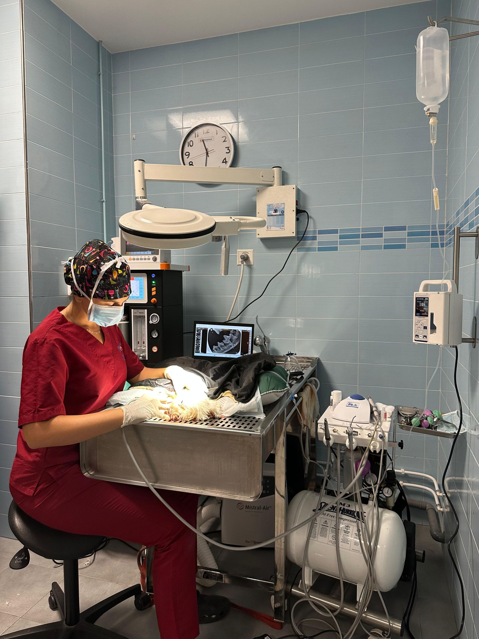 En nuestra clínica contamos con un quirófano totalmente equipado con monitorización anestésica multiparamétrica que nos permite anestesiar a animales de cualquier edad o condición con la máxima seguridad pudiendo realizar tratamientos bucodentales de todo tipo: